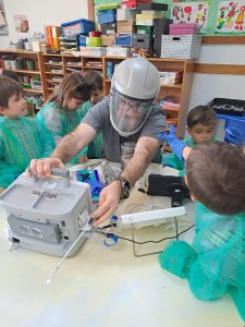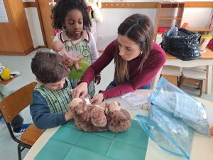 integrada no Projeto Pedagógico “somos uma comunidade que aprende e ensina”. Pretendemos dar a conhecer às nossas crianças algumas das profissões que existem, de modo que se sintam mais integradas no mundo que as rodeia. Para atingirmos estes objetivos, convidamos os pais a colaborarem connosco, através da demonstração da sua profissão. Com esta atividade, as crianças aprenderam novos conceitos e também conheceram novas pessoas. Ao mesmo tempo, promovemos o envolvimento familiar na vida do Jardim de Infância, tão importante para as nossas crianças.